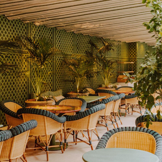 Designed by Laura Gonzalez, the interiors are a masterclass in contrast: bold neoclassical architecture softened by botanical murals, sculptural lighting, and a palette that shifts from mossy green to terracotta to soft citron. Velvet, lacquer, carved wood, and silk are layered with restraint, creating a space that is textural without noise. Every room feels like a stage — but one designed for quiet elegance rather than spectacle.